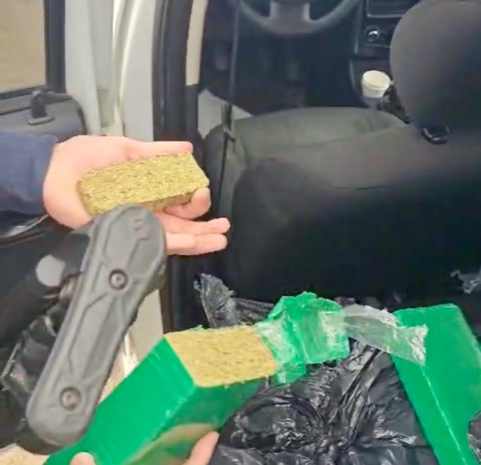 No banco traseiro, os agentes encontraram dois sacos pretos contendo 20 quilos de maconha divididos em tabletes.