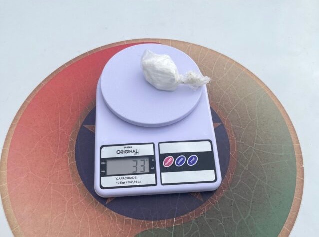 Durante a fuga, ele jogou um invólucro às margens da estrada, que posteriormente foi encontrado pelos policiais — o pacote continha cerca de 33 gramas de substância semelhante à cocaína.