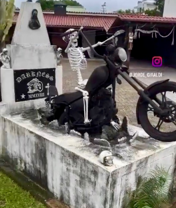 Em vídeo publicado em suas redes sociais, o delegado mostrou detalhes da decoração do pátio de sua casa, em Araranguá.