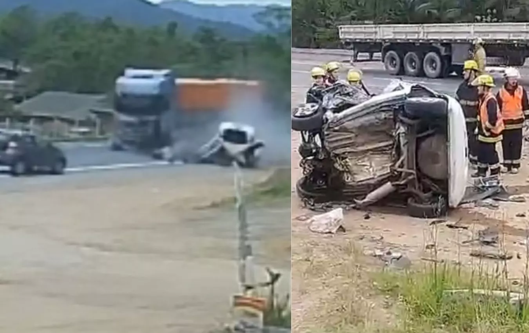 Um grave acidente na manhã desta quinta-feira (16) deixou uma pessoa morta e duas feridas na BR-470, em Indaial, próximo ao limite com Rodeio. O impacto foi tão forte que um caminhão de mercadorias tombou.