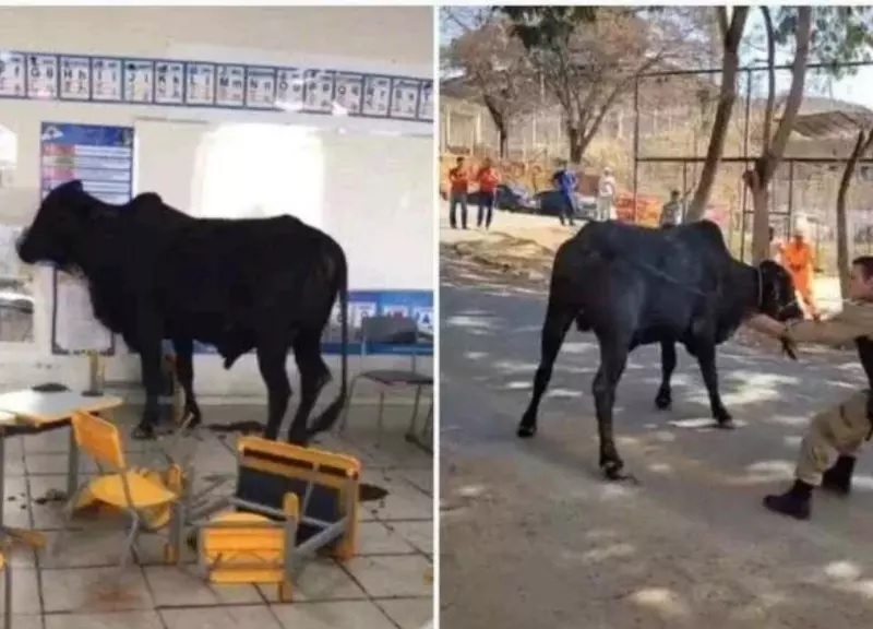 Boi descontrolado invade escola, causa pânico e deixa crianças feridas; VEJA VÍDEO